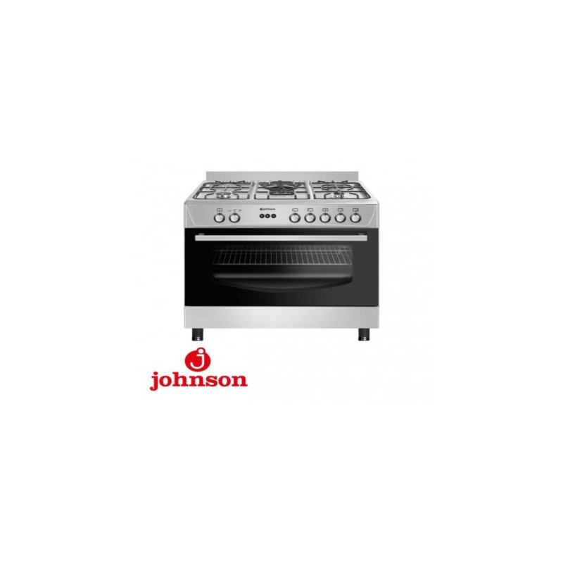 COCINA A GAS CON HORNO - JOHNSON COCI90BX1 , 5 FUEGOS, ZONA WOK TRIPLE LLAMA, ANCHO 90 CM, TAPA DE CRISTAL, ACERO INOXIDABLE.