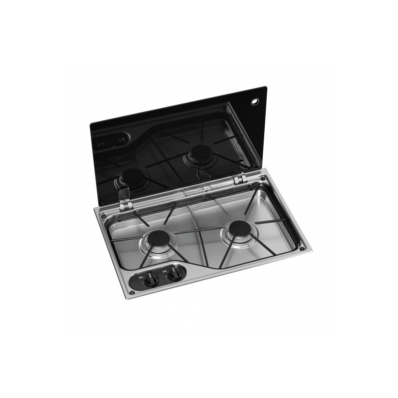 Cocina Dometic HB3400 3xFuegos Placa de cocción empotrable de 3 quemadores a gas. Rejillas para artículos de cocina extraíbles y fáciles de limpiar. Sistema de encendido de seguridad. Soporte y tapas de los quemadores esmaltados.