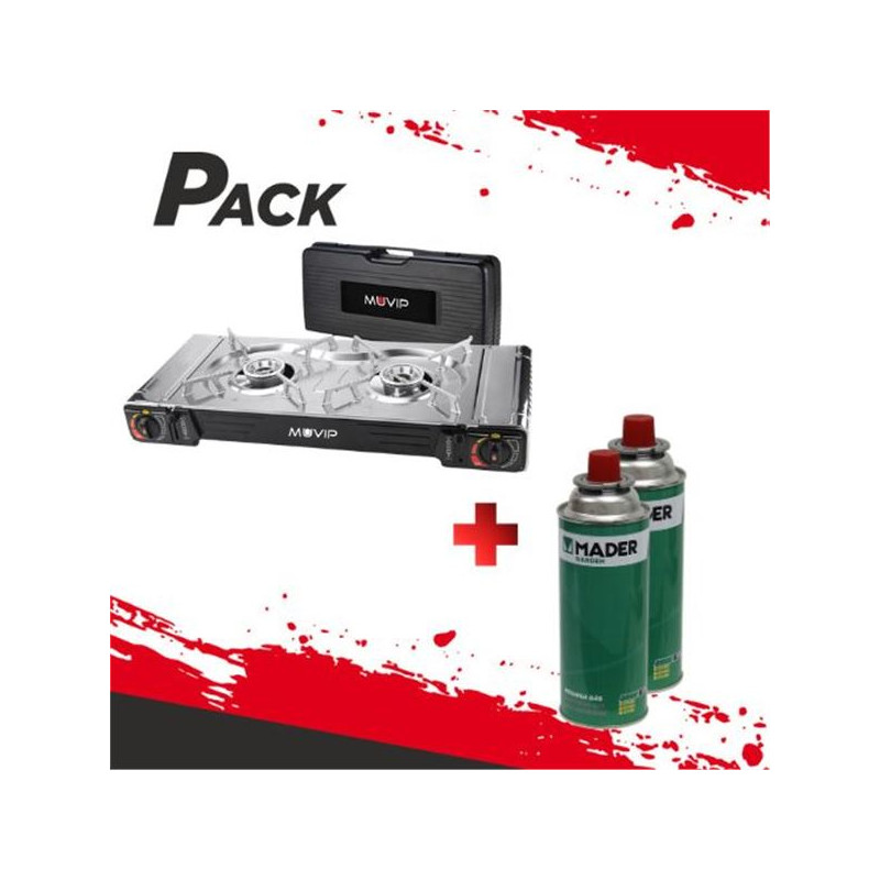 Pack compuesto de Cocina portatil gas MV0336 y 4 CARTUCHOS GAS 227GR. MADER 69105