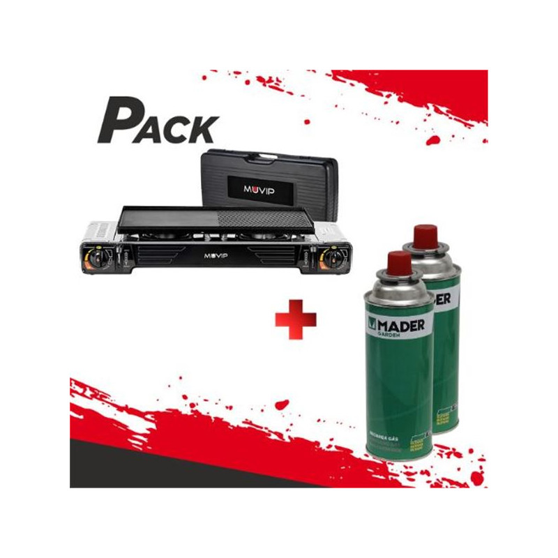 • Pack compuesto por COCINA DE GAS PORTATIL DOBLE BOMBONA ACERO (MV0612) + 2 CARTUCHOS DE GAS (2000022381)