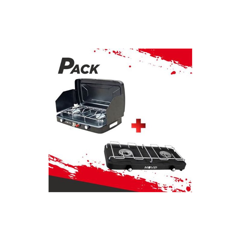 COCINA DE GAS 2 FUEGOS + PROTECTORES CONTRA VIENTO + COCINA DE GAS 2 FUEGOS PACK216