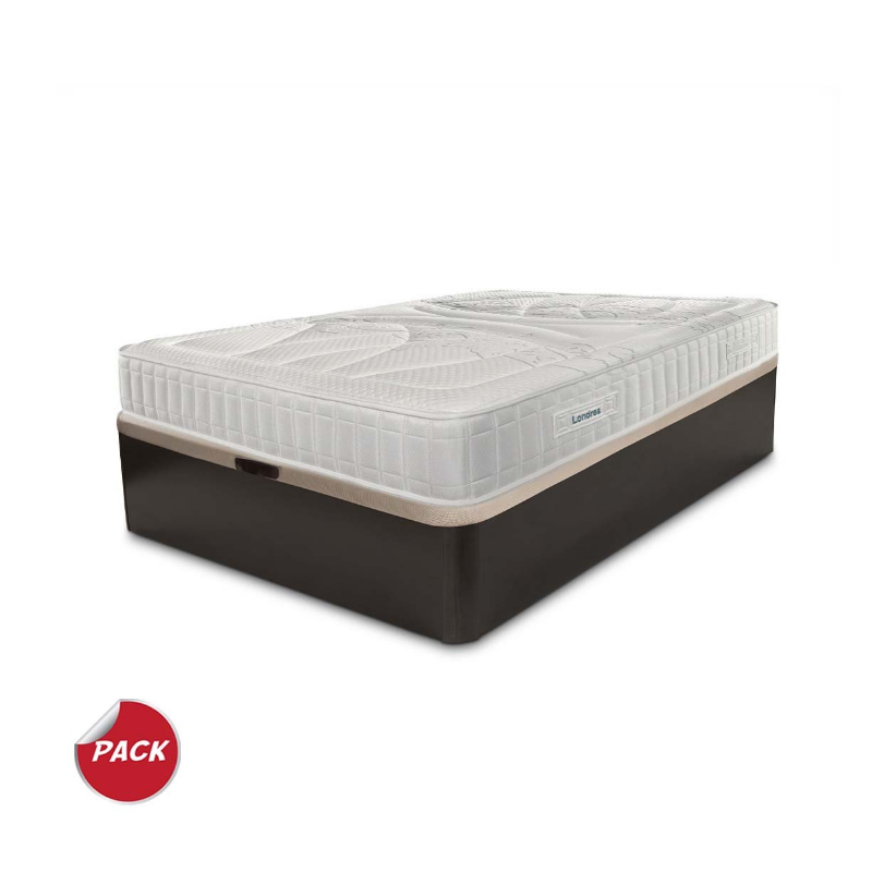 Pack colchón modelo LONDRES + CANAPÉ 22. Londres es un colchón con núcleo de Muelles Ensacados con BOX, es un refuerzo perimetral en todo el contorno del colchón para mayor firmeza, junto a las planchas amortiguadoras duras en ambos lados. Canapé 22 fabricado sobre tablero de partículas melaminizado de 22 mm de espesor. MONTAJE: Este mueble de entrega en...