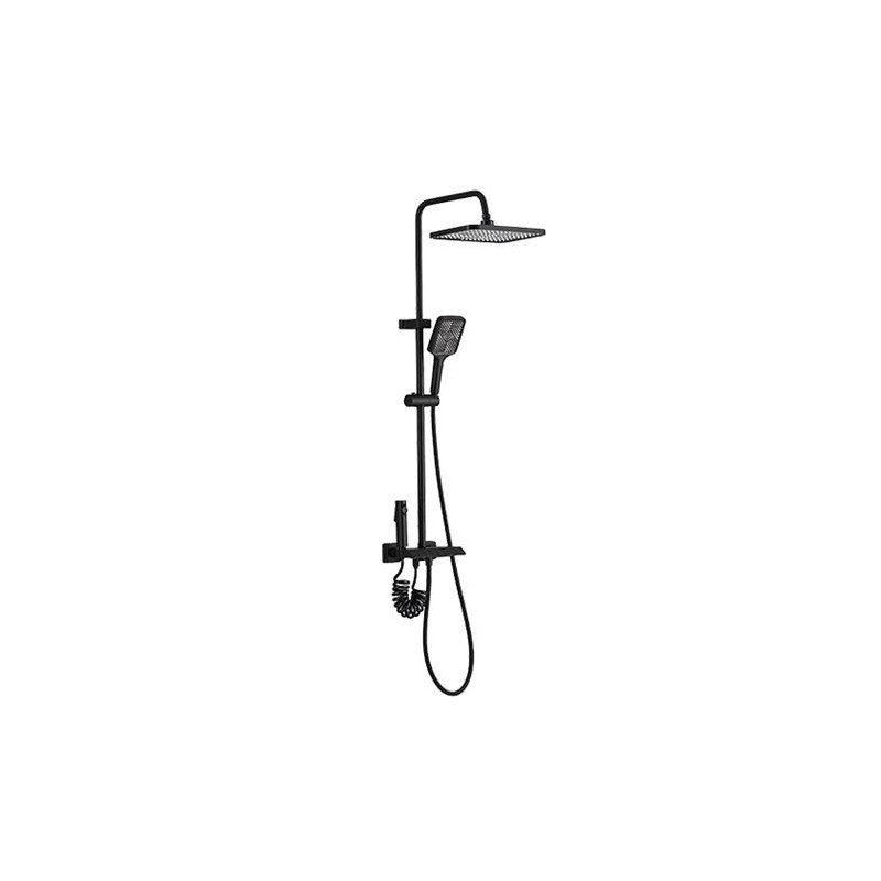 Columna de ducha con hidromasaje. Incluye dos paneles de masaje. Fácil montaje. Acabado: negro mate. Manguera de ducha de acero inoxidable de 1.5 m. Medidas: 20 x 140 cm.