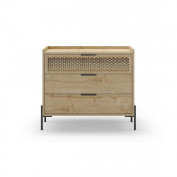 www.comercialguayarmina.com Realizado en madera maciza de pino en varios colores. Tapa superior en madera de pino color natural acabado en cera. Cajones con guías metálicas. Puerta con tirador en acero negro y balda interior. Pies en madera de pino en varios colores. MEDIDAS: LARGO 100 x FONDO 50 x ALTO 104 CM.