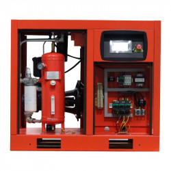 • Compresor de tornillo rotativo de accionamiento directo, diseñado para uso industrial continuo de alta capacidad. • Refrigerado por aire. • Equipado con un motor trifásico de alta resistencia. • Modo de funcionamiento con velocidad fija o variable. • Funcionamiento silencioso. • Carcasa de acero. • Caudal de aire 8 bar: 1.0 m3/min. • Caudal de aire 10...