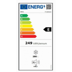 Congelador VerticalMedidas alto/ancho/fondo 1860x595x650 mmCapacidad Bruta/Neta 307/280 LTecnología NO FrostClasificación energética ETirador metálico con rotura de vacíoDisplay en puertaFunción Super Congelación y ECO5 Cajones + 2 Flaps6 Baldas de cristal bajo los cajonesClasificación climática SN-TCapacidad de congelación 25 kg/24 hNivel sonoro 42...