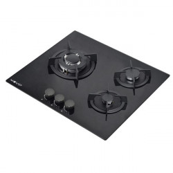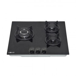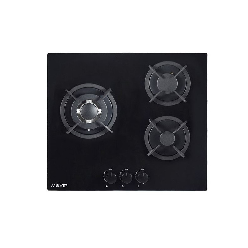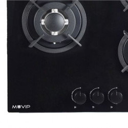 PLACA CRISTAL GAS - MUVIP MV0626, 3 ZONAS, 1 FUEGO TRIPLE ANILLO, PARRILLAS INDIVIDUALES DE HIERRO FUNDIDO, COLOR NEGRO.