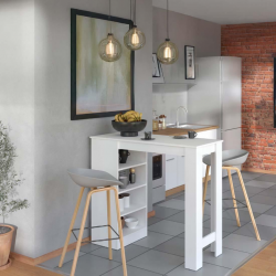 MESA BAR ALTA VALENCE, 4 ESTANTES LATERALES, FI11012238, COLOR BLANCO.