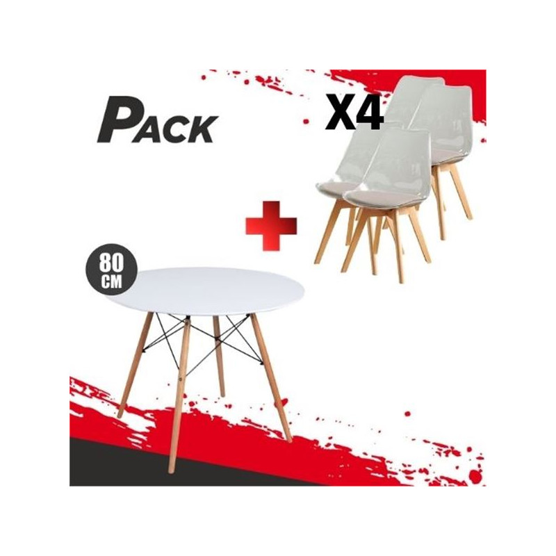 MESA REDONDA DESIGN D500 80CM BLANCA + 4 SILLAS DESIGN D1000 TRANSPARENTES MUVIP PACK227