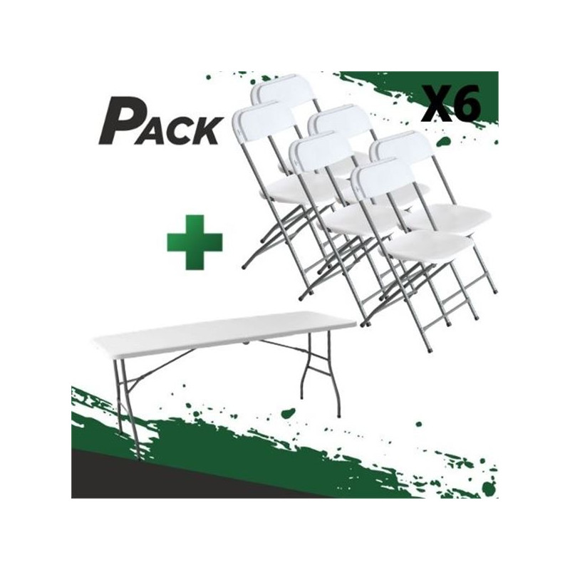 MESA DE RESINA PLEGABLE 180X70X74CM + 6 SILLAS RESINA PLEGABLE 80X50X45CM SUNGARDEN PACK248