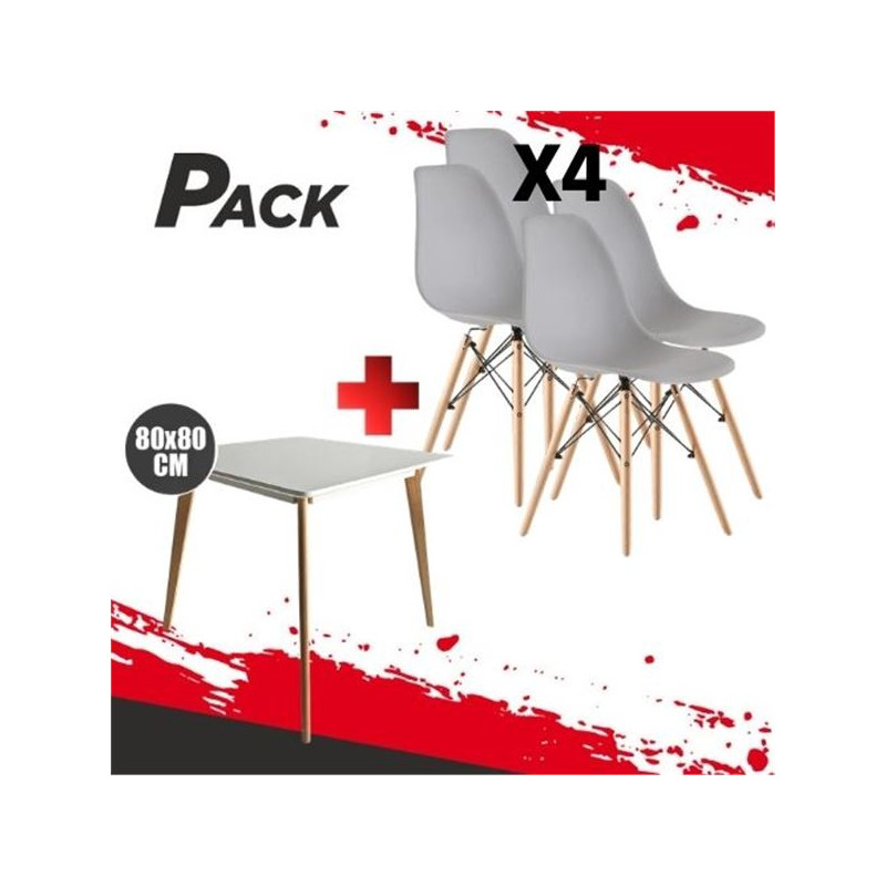 N D900 80X80CM BLANCA + 4 SILLAS DESIGN D100 GRISES MUVIP PACK223