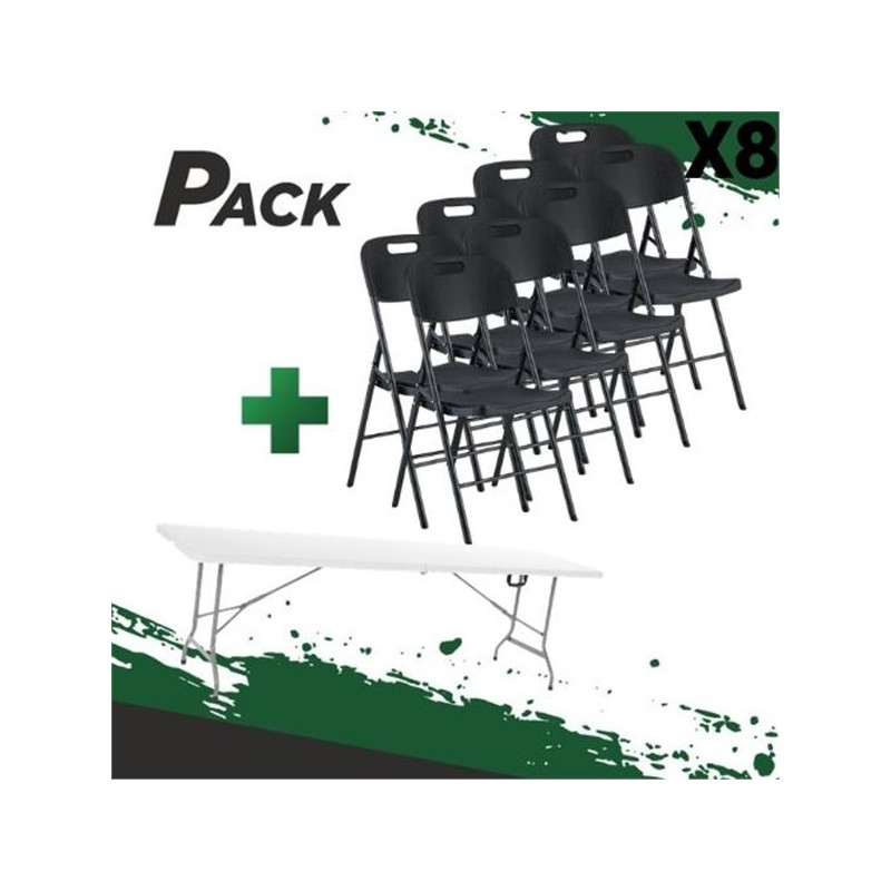 Envió GRATIS a todas las islas Canarias, entrega en 24/72 horas laborales. • Pack compuesto por MESA DE RESINA PLEGABLE 240X74X74CM (SG0100) + 8 SILLAS RESINA PLEGABLE PRO 44X53X83 (SG0157)