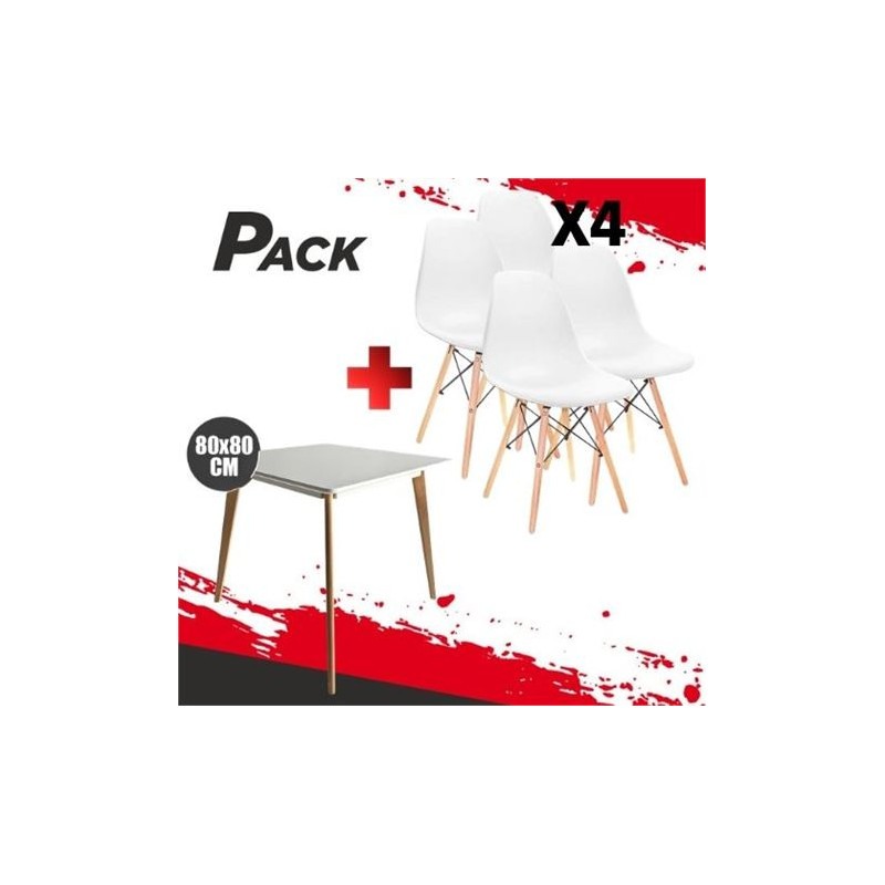 Envió GRATIS a todas las islas Canarias, entrega en 24/72 horas laborales. • Pack compuesto por MESA DESIGN D900 120X80CM BLANCA (MV0568) + 4 SILLAS DESIGN D100 BLANCA MUVIP (MV0314)