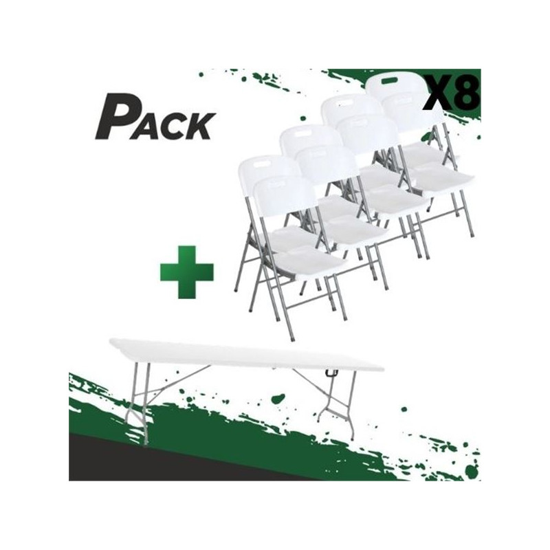 Envió GRATIS a todas las islas Canarias, entrega en 24/72 horas laborales. • Pack compuesto por MESA DE RESINA PLEGABLE 240X74X74CM (SG0100) + 8 SILLAS RESINA PLEGABLE 80X50X45CM (SG0101)