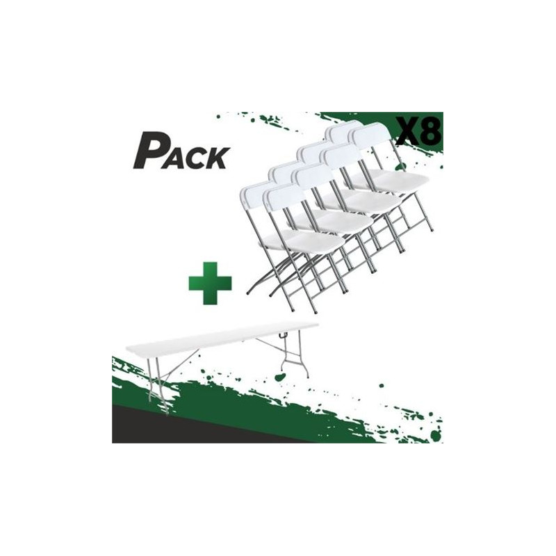 MESA DE RESINA PLEGABLE 240X74X74CM + 8 SILLAS RESINA PLEGABLE 80X50X45CM SUNGARDEN PACK252