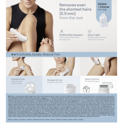 www.mipuntomovil.com Nunca esperes de nuevo a que tu vello corporal crezca para que la cera pueda conseguirlo. La tecnología de pinzas de agarre cerrado específicamente diseñada de Braun atrapa el cabello tan pequeño como un grano de arena (0,5 mm). No más días entre días, no más molestias. Sistema de masaje de alta frecuencia. Estimula la piel para una...