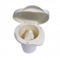 Toma de ducha exterior modelo W. Universal, válido tanto para bombas automáticas como para bombas sumergibles o de paso. Enchufe rápido de plástico. Incluye espiga de conexión. Medidas de montaje: Ø 58 mm, 55 mm de profundidad.