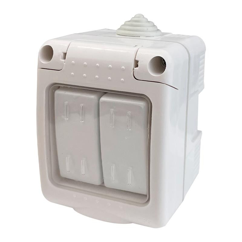 • Conmutador de superficie estanco IP55. • Ideal para exteriores, jardines, terrazas y ambientes húmedos debido a su resistencia al polvo y al agua. • Fabricado con materiales de alta calidad con una tapa de plástico para mayor durabilidad.