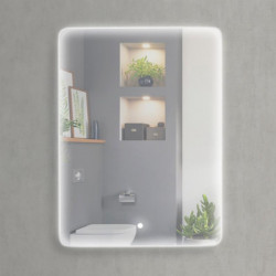 Forma Rectangular. Cristal de 5 mm. Medidas: 60x80 cm. Con iluminación LED. Bordes redondeados. Potencia: 14W (1260 Lúmenes).