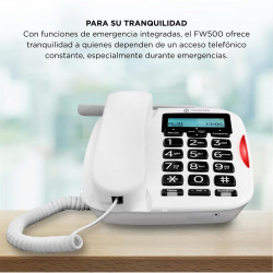 www.mipuntomovil.com Manos libres Pantalla LCD 16 dígitos 8 x 2 memorias directas Toma auricular (Jack 2,5mm) Agenda: 50 registros Indicador de llamada Blanco