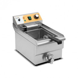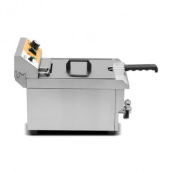 • Freidora eléctrica de 10 litros CHEF PRO, ideal para restaurantes, bares y negocios de hostelería que buscan un equipo potente y fácil de mantener. Potencia de 3 kW, cuerpo de acero inoxidable y tanque con válvula de vaciado.