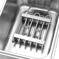 • La freidora eléctrica doble CHEF PRO CF0103 está diseñada para un uso intensivo en cocinas profesionales que requieren máxima productividad y eficiencia. Cada cuba funciona de manera independiente, lo que permite freír diferentes alimentos al mismo tiempo sin mezclar sabores.