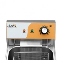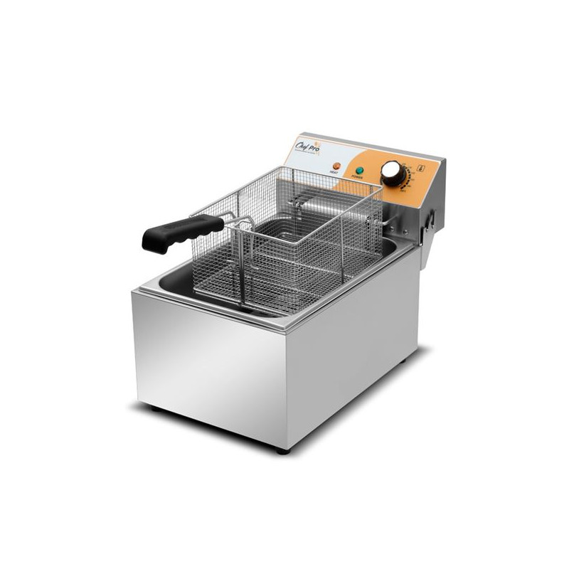 • Freidora eléctrica de 11 litros CHEF PRO, ideal para restaurantes, bares y negocios de hostelería que necesitan gran capacidad de fritura en un solo tanque. Potencia de 3 kW y construcción en acero inoxidable.