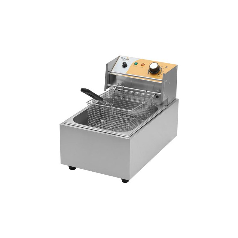 • Freidora eléctrica de 9 litros CHEF PRO, ideal para restaurantes, bares y negocios de hostelería. Potencia de 2,5 kW, cuba de acero inoxidable y control de temperatura con termostato de seguridad.