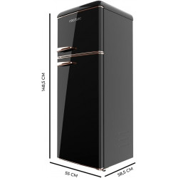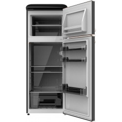 Mini nevera Alto 55, Ancho 45,5, Fondo 52 cm. Bolero CoolMarket TT Origin 45 Black Mini frigorífico retro con capacidad de 45L, ICEBOX, LED interior, tirador cromado. La gran capacidad de 45 L del mini frigorífico hace que sea ideal para conservar un buen número de bebidas y alimentos bien fríos. Coloca la nevera donde quieras y ten a mano tus refrescos...
