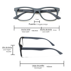 Aumento de las lentes: +2,5.Gafas de aumento para lectura con montura color gris con relieve. Montura ligera y resistente con un llamativo diseño.Patillas flexibles. Bisagras con mecanismo de resorte para una mejor adaptabilidad de las gafas al rostro.Lentes asféricas (eliminan la distorsión visual periférica), delgadas, con tratamiento anti-rayado y...