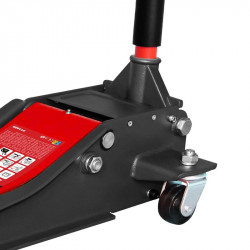 • Gato hidráulico perfecto tanto para uso particular como profesional en talleres. • Capacidad de carga 2 toneladas. • Rango de elevación: 8.5- 38.5 cm. • Ruedas traseras giratorias 360°.