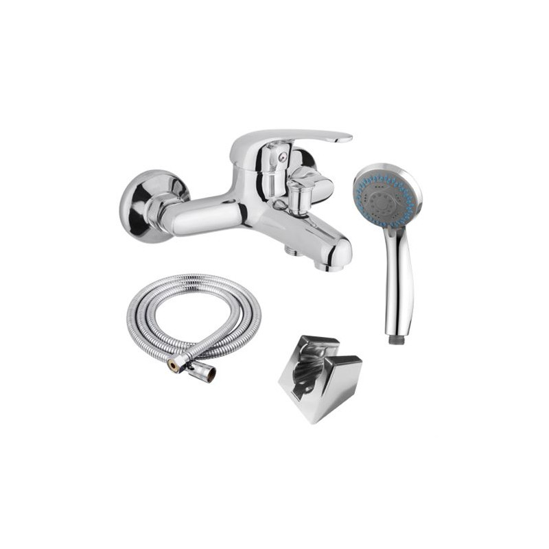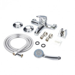 Monomando bañera serie diamante. Acabado cromado. Monomando de bañera con accesorios. Incluye manguera 1.5 metros. Incluye mango ducha. Cuerpo de latón. Mango de zinc. Medidas: 19 x 14.5 x 10 cm.