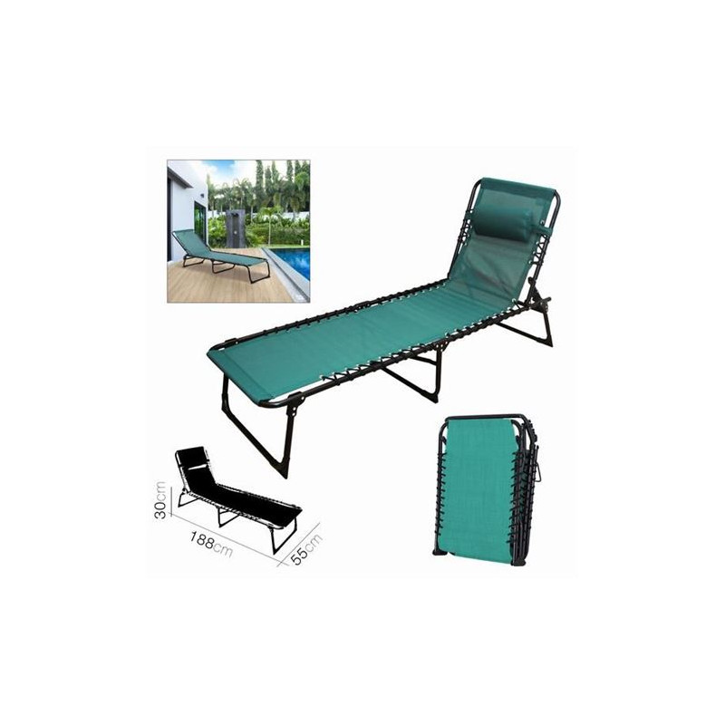 • Tumbona plegable, perfecta para la playa, terrazas, jardines, etc. • Respaldo regulable. • Asas de transporte de tela. • Estructura de aluminio.