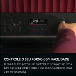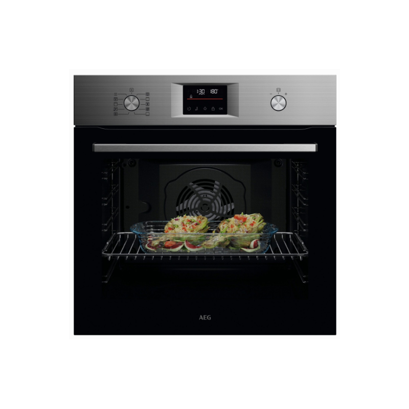 Horno multifunción con 7 funciones de cocinado Panel de acero inoxidable de diseño moderno Mandos push para mayor comodidad y seguridad Soportes cromados ajustables en 5 niveles Clase energética A+