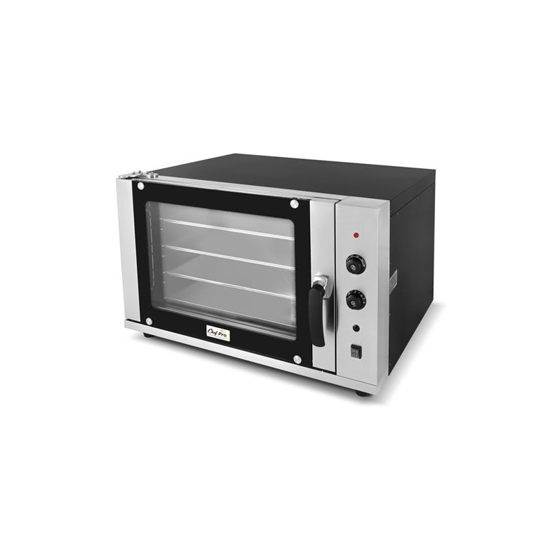 • Horno de convección industrial de uso profesional indispensable en panadería, repostería, hostelería y restauración en general. • Potencia 2.600 W. • Fabricado en acero inoxidable. • Ventana de visión extra grande. • Fácil de limpiar. • Medidas: 46x57x46 cm.