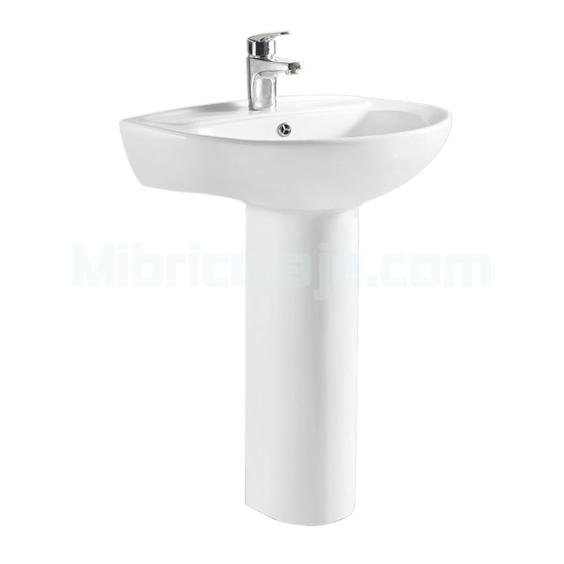 Lavabo con pedestal incluido. Agujeros para grifería: 1 Agujero en el centro. Material: Porcelana. Color: blanco. Juego de fijación incluído.