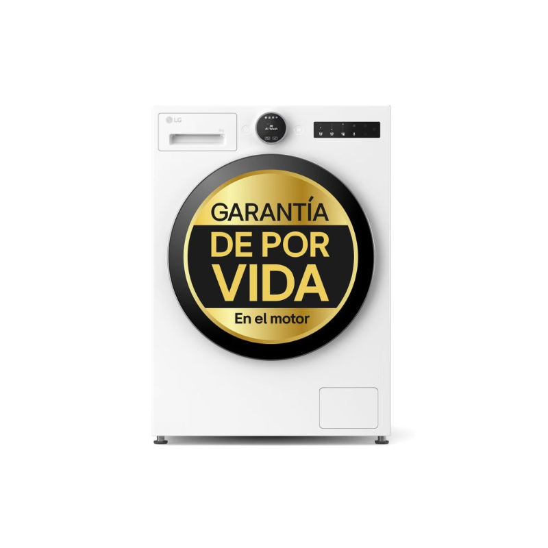 Lavadora Serie 100 carga frontal de libre instalación de 9 kg de capacidad, 1.400 rpm, 6 Motion DD, Vapor Steam, AI DD - Direct Drive con Inteligencia artificial, ThinQ(Wi-Fi), Tambor Powersoft de acero inoxidable, Selector giratorio + botones táctiles y pantalla LCD+LED, blanca, 600x850x550 mm, clase A Altura (mm): 850 Ancho (mm): 600 Capacidad (Kg): 9...