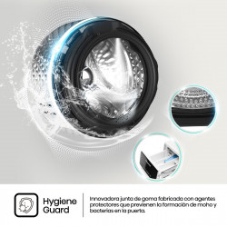 Tecnología Inverter BPM y eficiencia superior. Su motor inverter BPM proporciona alta durabilidad, rendimiento consistente y una significativa reducción de ruido y vibraciones. La clase de eficiencia energética A en lavado garantiza ahorros en cada ciclo y respeto medioambiental. Conectividad