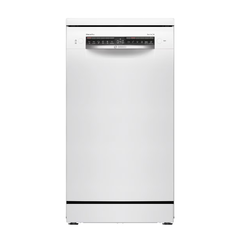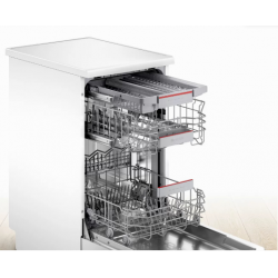 Apertura automática; Lavado Express de 1H; Disminución del ruido; Auto Soil; Aqua Stop; Auto Adjust; Tercer estante; Función Higiene. Altura (mm): 845 Ancho (mm): 450 Color: Blanco Eficiencia energética: _E Fondo (mm): 600 Nº de cubiertos: 10 Nº de programas: 6 Programación diferida: Sí Tercera bandeja: Sí