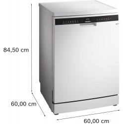 www.comercialguayarmina.com Lavavajillas de libre instalación de 60 cm, 13 servicios de capacidad, 6 programas, Display, 4 temperaturas, 3ª bandeja, media carga, Secado mini-active, Clase "E" ,49 Db, blanco. Altura (mm): 850 Ancho (mm): 598 Color: Blanco Eficiencia energética: _E Fondo (mm): 598 Nº de cubiertos: 13 Tercera bandeja: Sí