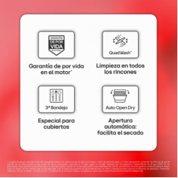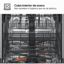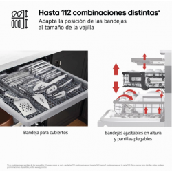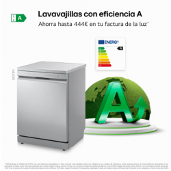 Clasificación energética A Dentro de un rango energético A → G Capacidad: 14 servicios. Tipo de pantalla: LED. 3º bandeja ajustable en altura (ajustable). Ciclo/Opción: Automático, Cancelar, Bloqueo del panel de control, Inicio retardado, Delicado, Descargar ciclo, Dual Zone, Eco, Ahorro de energía, Rápido, Extraseco, Media carga, Alta...