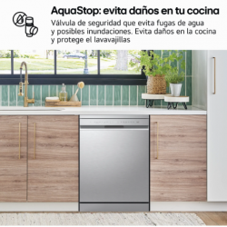 LG DF030FL, Independiente, Tamaño completo (60 cm), Plata, Tocar, 2 cesta(s), Canasta 3ª bandeja:No Altura (mm):845 Ancho (mm):600 Color:Inox Eficiencia energética: E Fondo (mm):596 Nº de cubiertos:13 Nº de programas:8 Programación diferida:Sí Tipo:Libre instalación