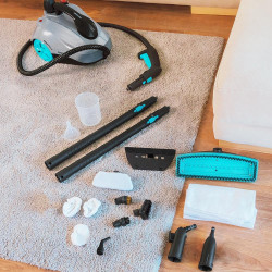 Limpiador de vapor. De uso manual. Limpia y desinfecta. Incluye 8 accesorios de limpieza. Práctico y compacto. Escribir un Email a un amigo Compartir en Facebook Compartir en Twitter