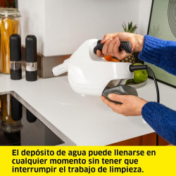 • Limpia y desinfecta sin esfuerzo con este limpiador a vapor de 1.350W. • Incluye cepillo de suelo para usar como un aspiradora. • Depósito de 550 ml. • Presión de 3 bares y 32 g/min de caudal de vapor para limpiar la suciedad más incrustada. • Calentamiento rápido en 30 segundos. • Bloqueo infantil. • Incluye accesorios para llegar a todos los rincones...