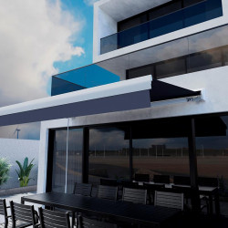 • Toldo manual retráctil. • Poliéster 280 g/m2 con revestimiento de PU. • Brazos de aluminio. • Barra de torsión de acero. • Rodillo de tela de aluminio. • Medidas: 2.9x2 metros.