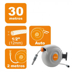 www.mipuntomovil.com • Manguera de agua diámetro 3/5' (15mm).• Longitud: 25 metros.• Número de capas: 5.• Resistente a altas presiones.• Sistema no torsión, para evitar nudos y estrangulaciones de la manguera.• Para uso intensivo.• Totalmente libre de Cd y Ba (Cadmio y Bario).• Accesorios incluidos: Boquilla de riego, conector grifo-manguera y soporte....