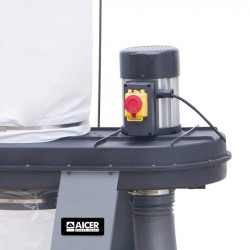 Potencia 750 watios, potente motor de inducción 1 HP.. Eficaz aspiración de serrín. y polvo producido por el trabajo. en la madera y otros materiales. Capacidad del contenedor 70 litros. Caudal 960 m3/hora Tubo flexible 2 metros 2 sacos, peso 30 kilos