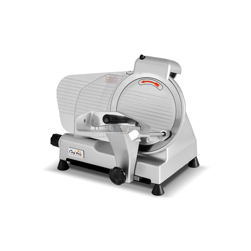 • La CHEF PRO CF0130 es una cortadora de carne profesional diseñada para garantizar cortes precisos y uniformes en todo tipo de embutidos, fiambres y carnes frías. Su motor de cobre de alto rendimiento y su cuchilla de 250 mm ofrecen potencia, durabilidad y un funcionamiento continuo ideal para restaurantes, charcuterías, carnicerías y cocinas industriales.