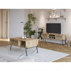 Mesa centro elevable. Combina funcionalidad y diseño que la hace perfecta para cualquier salón. Dispone de un compartimiento interior, ideal para almacenaje de revistas, aparatos electrónicos o mandos de TV. Fácil de limpiar.