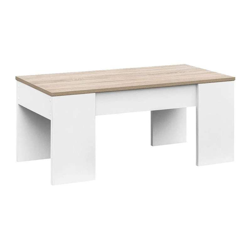 El efecto madera cambrian y blanco crea una encantadora mesa baja auxiliar. Sencillez y minimalismo en esta mesita-escritorio moderna que se hará con un hueco en tu salón o comedor sin dificultad.